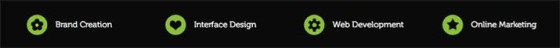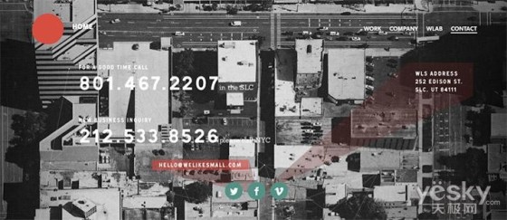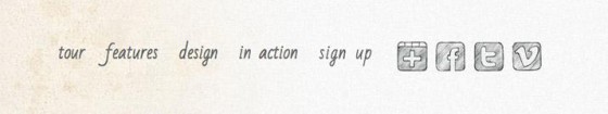 图标与网站整体形成鲜明的对比: 当图标作为导航时,这种方法非常奏效,比如上图的社交媒体链接,更能够吸引注意力。