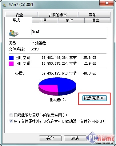 安装完这个更新之后,打开系统分区的“磁盘清理”工具;