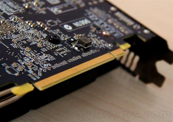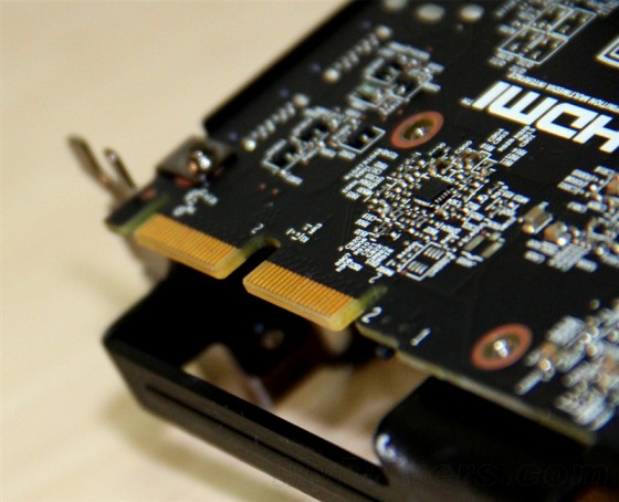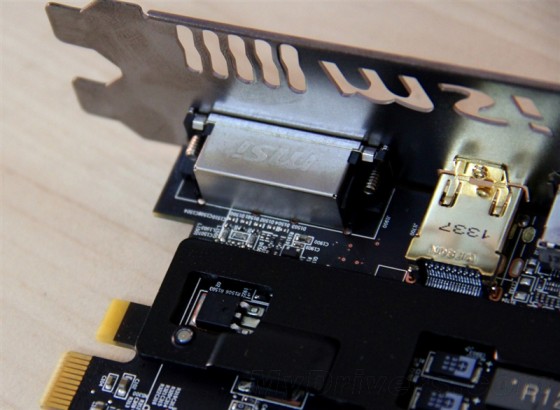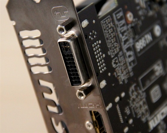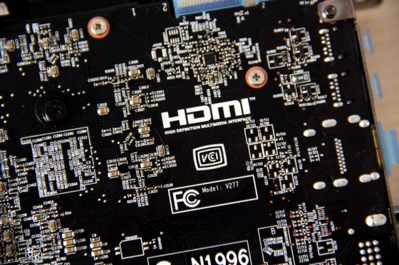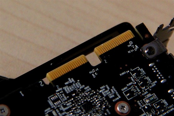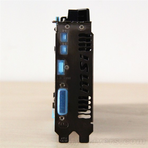 微星R9 280X GAMING 3G侧面接口:一个DVI,一个HDMI,两个mini DP接口。外面均有塑料塞(或套)保护。