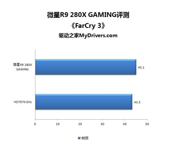 《Far Cry 3》测试中,微星R9 280X仅领先HD7970 GHz不到2帧。