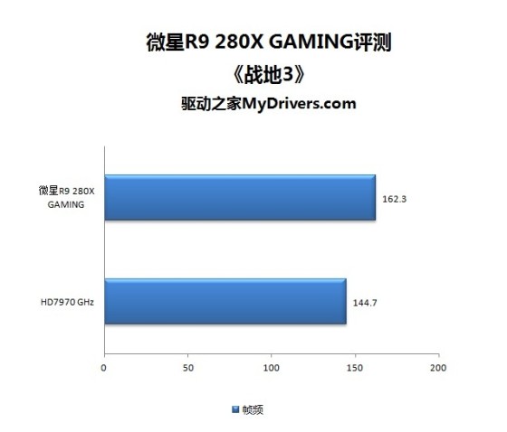 AMD拿到了《战地4》的首发资格,但其实在《战地3》中R9 280X的表现就不错,领先HD7970 GHz达12.2%。