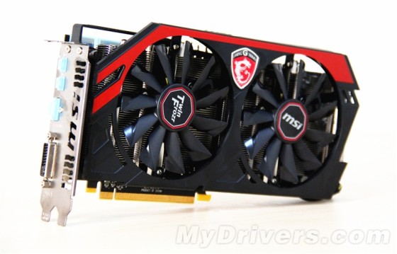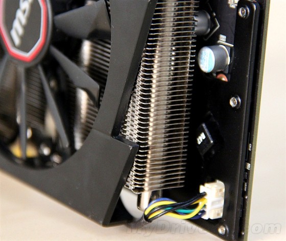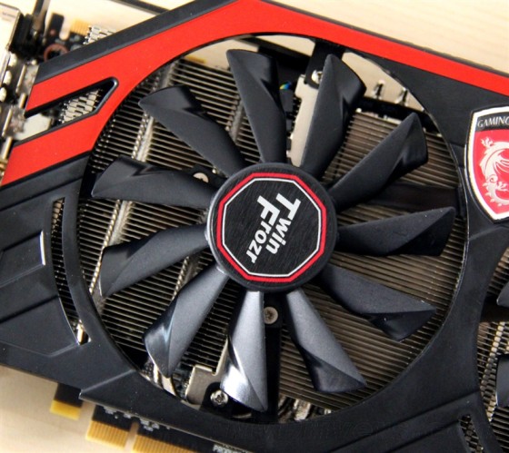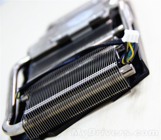 得益于独家的TwinFrozr IV的散热器设计,两个10cm风扇和5个8mm热管、以及镀镍铜散热底座,可以及时的将热量散发出去。实测待机温度为35°,比HD 7970 GHz要低8°;而鉴于更大的功耗,在满载时的散热效果一般,仅比HD 7970 GHz低2°。