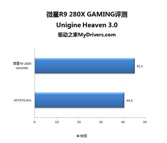 在另一款老牌DX11测试工具中,微星R9 280X领先HD7970 GHz约为11.6%,略显彪悍。