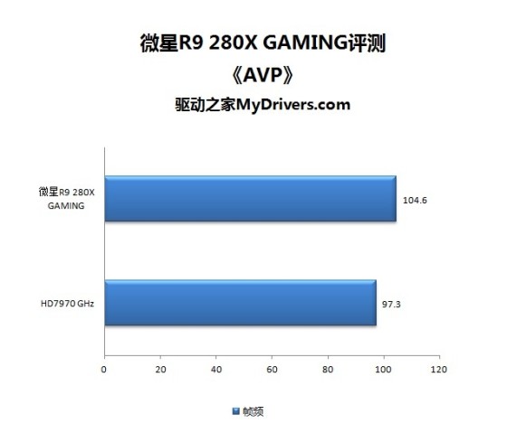 《AVP》测试中,微星R9 280X也有较大的优势,领先HD7970 GHz达7.5%。