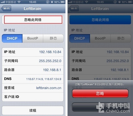 这可算是我的一次经历了,照着我说的做,很快就会解决这些问题。先打开“设置”,点击“Wi-Fi”,进入后点击右 边的蓝色箭头。再点击“忽略此网络”。然后退回到设置界面,进入“通用”。找到“还原”后,点击“还原网络设置”,输入设置的手机密码,手机开始自动重 启。