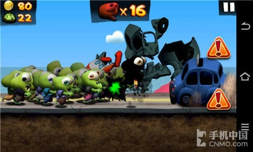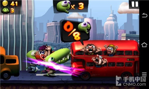 另外,路上所有的行人,我们都是可以控制僵尸将它们一一斩获的,让自己的僵尸团队就会壮大起来,这样做的目的是要拥有足够数量的团队去抵抗飞机大炮什么的。可以说,这是目前为止,笔者见过最为妙趣横生的跑酷游戏,同时我也强烈建议大家都来尝试一番。