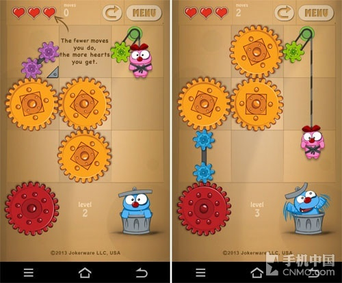 从游戏的名字以及图标上我们不难看出,“爱的齿轮”是一款要通过正确摆放齿轮位置方能过关的益智休闲游戏。同时,游戏的故事内容非常有趣又不失 有那么一点小邪恶,两只小怪物要XXOO来繁衍后代,但是一个在上一个在下,不能接触。玩家的目的就是摆放齿轮的位置,让他们在一起进行XXOO。
