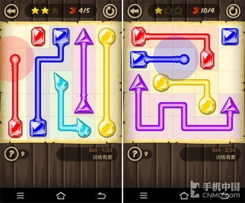 可以说,游戏操作方式与三消玩法一点关系都没有,各位需要做的是连接棋盘上两颗相同颜色的宝石就可以了,但连线必须填满整个棋盘,并且不能够有交叉。另外,随着后续关卡难度的增加,游戏中还会出现一些有趣的道具等待玩家来摸索。