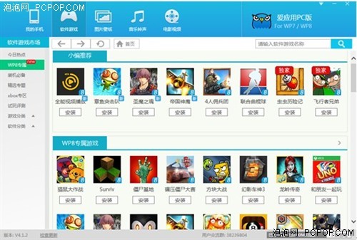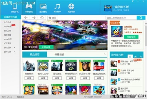爱应用PC版的WP8专属区域可谓是拥有最多WP8破解资源的地方了,现代战争4、光环斯巴达、蝙蝠侠、蜘蛛侠、FIFA13等等诸多XBOX游戏大作全能免费玩,妈妈再也不用担心我的钱包了....。.同时爱应用PC版与其另一个产品新锋网(http://www.xapcn.com/)实现了完全打通,用户在新锋网点击一键安装即可轻松把要装的应用装到手机上。