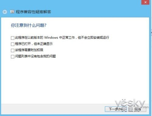 如果在刚才的界面中我们选择“疑难解答程序”,系统会给出几个运行故障的问题描述供等用户勾选,用户勾选属于自己的程序运行故障现象,然后进入下一步。