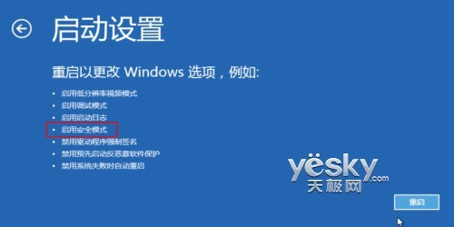 进入Win8系统的“启动设置”,我们可以看到具体的描述,其中就包含有“启用安全模式”这一项。点击产“重启”按钮。选择“启用安全模式”或者“启用带网络连接的安全模式”。