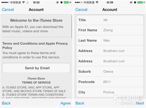 然后点击自己的Apple ID查看,输入密码,进入信息主页。在这里,我们就要更改国家啦,即Gountry。点击“国家与地区”,我们选择“新西兰:New Zealand”,之后同意并发送邮件。