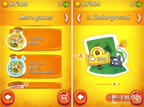 最后我们来说说游戏的内购,对于现在的游戏来说,内购已经不可避免了,不过《割绳子2》作为一款休闲游戏,它对于内购的依赖性要远远的低于其他游戏,即使玩家不花RMB去购买道具,也可以畅玩游戏。