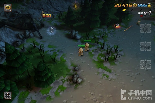 面我们来说说游戏操作,这款游戏并没有采用目前十分流行的虚拟摇杆操作,玩家需要用点击屏幕的方式进行移动,点击敌人就可以设计,而炸弹等一系列武器则需要玩家点击武器拖动至需要攻击的对手身上就可以攻击了,整个游戏操作简单很容易上手。