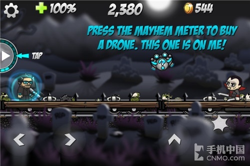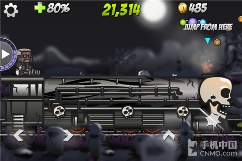 在可玩性上,由于游戏采用了“无尽”式设定,所以游戏不仅具备横版闯关玩法,还拥有酷跑游戏的体验,玩家可以一往无 前的重现重点去一刀干掉BOSS。游戏的整体节奏十分紧凑,玩家开始会从一架直升机上降到奔驰的列车上,之后就可以无穷无尽的去向前挺进了。在前进的过程 中,玩家会遇到各种类型的僵尸以及骷髅,这里我们要拿起武器一一将其消灭。此外,当攻击达到一定程度时,玩家还可以请求支援,召唤出助手来协助你,不过这 有时间限制的,另外召唤物品需要星星来解锁,如果你想要解锁更加犀利的道具,除了内购那就是慢慢的攒了。