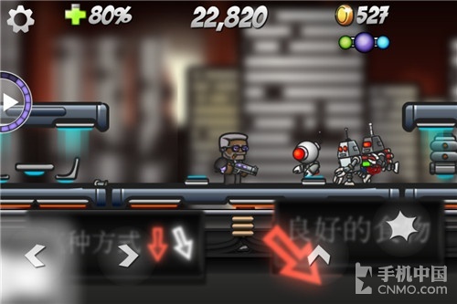 说完了新元素,我们来回忆回忆童年,玩过游戏的玩家一定对《合金弹头》和《魂斗罗》不陌生吧,在跑酷类游戏中也有这么一款类似的游戏,它就是 《暴风列车》。《暴风列车》是Chillingo最新最初的横版闯关游戏,游戏乍一看有点像《合金弹头》式的横版射击游戏,但实际上还是有很多差别的, 《暴风列车》并没有设置一关一关的关卡,而是采用了无尽模式,玩家只需要控制主角开枪不断的射击敌人并向前跑就可以了。