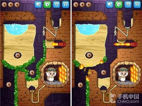 玩法上,该作依旧与“鳄鱼小顽皮”一样,玩家需要通过正确合理地开垦水渠,将水流引入喜羊羊身边,帮助他成功扑灭火焰即可通关。除了开垦水渠,随着关卡的解锁,会出现更多的玩法元素,而且难度都不一样。