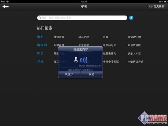 PPTV是在8款视频播放器中唯一支持语音搜索功能的!由科大讯飞识别语音,仅支持中文。