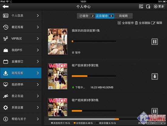 PPTV:支持电视剧/欧美剧缓存,但只能逐部缓存影片。