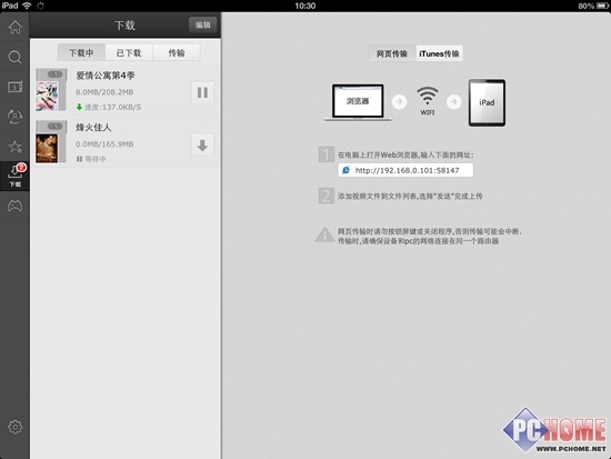 PPS:支持边下边看功能,但只能一部部下载影片。支持网页传输与iTunes传输,不支持欧美剧下载。