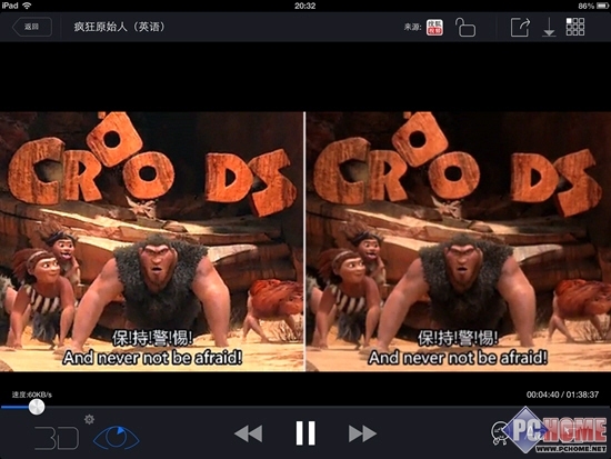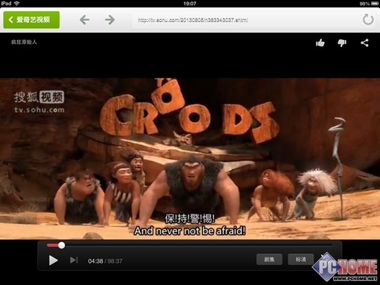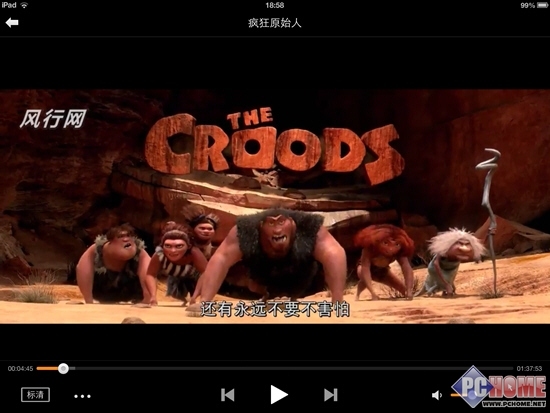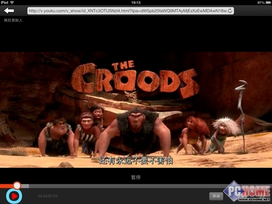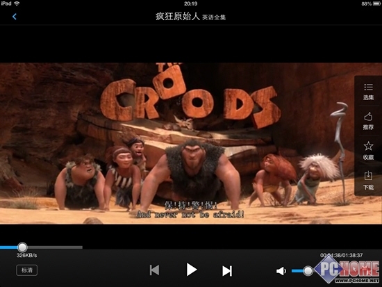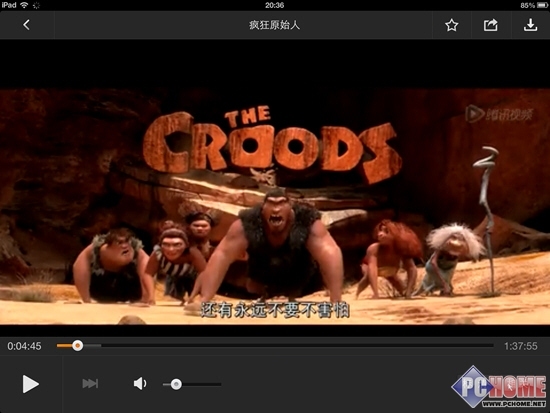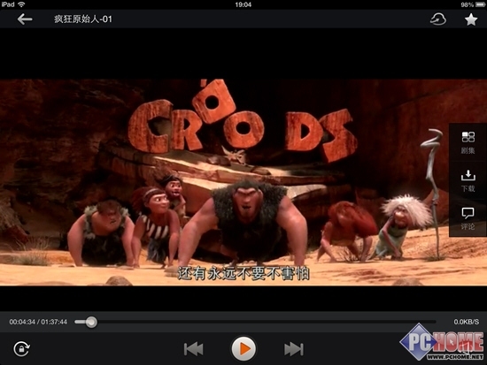 PPTV:《疯狂原始人》的播放源较多。但优酷与土豆只能观看10分钟,想要继续观看需要下载客户端。画质清晰度与色彩度相对一般。