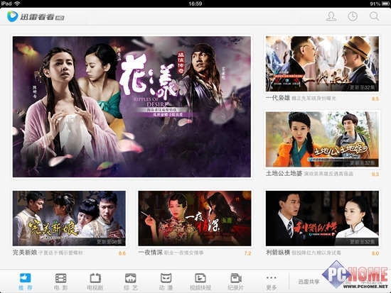 迅雷看看主界面简单清晰。相信对于第一次上手的用户能很快适应、熟悉此界面。