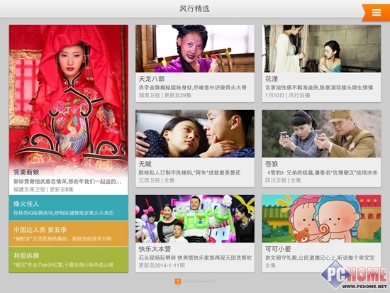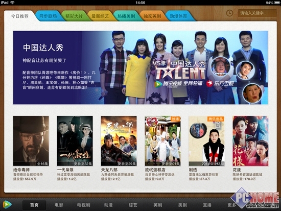 腾讯视频界面清晰,用户直接根据上下两行节目菜单选择喜爱的节目,减少了干扰,带来了更多便捷。
