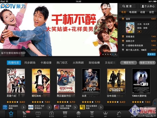 PPTV主界面上的内容排版十分紧凑,看着有些杂乱。好在各种按钮非常直观。