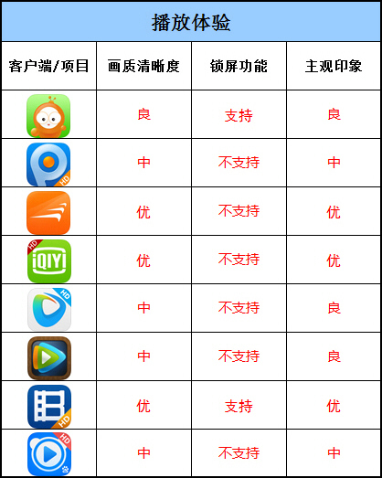 小结:在播放体验中,暴风影音的左眼模式与爱奇艺的“原画”体验,都在画质清晰度上加分不少,不过风行的画质与色彩鲜明度也是相当不错的。在8款播放器中,仅PPS、暴风支持锁屏功能。