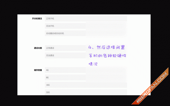 在“如实描述物品”页面中,我们需要确认自己手机的版本、保修时限、软硬件状况、外观以及新旧成色等信息,通过这些具体的信息淘宝可以帮助我们自动完成估价操作。