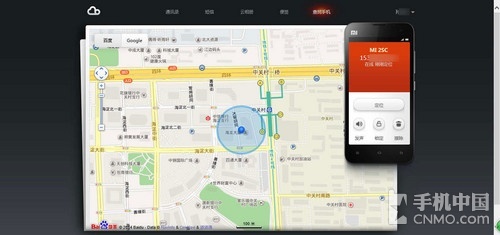 打开页面之后,输入与手机端上一样的账户和密码即可登录。到达登录界面之后,我们直接点击页面右上方的“查找手机”功能就能够马上为这台手机定位。经过再三测试,小米云服务中的定位还是比较精准的。