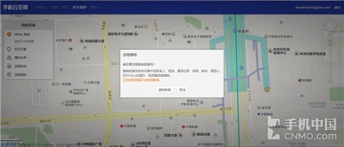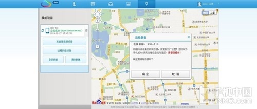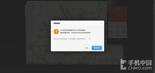 最后我们来说说清楚数据,点击之后同样会有菜单提示,如果我们手机丢失后,可以立刻通过电脑删除设备上的所有资料和数据并恢复到出厂设置,非常安全。