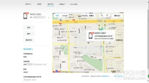 当我们在PC端通过Flyme登录之后,就可以看到当前这台手机所使用的准确号码,更是可以通过定位来大概确定这台手机目前处在什么方位。