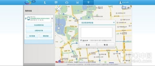 成功登陆之后,我们可以看到有一项名为“换卡发送号码”的功能,也就说,当这台手机不慎丢失,被换了新的SIM卡之 后,我们就可以通过云端查找到这个号码并实现定位。待一切手机端的设定设置完毕之后,让我们在PC端打开“http://flyme.meizu.com /flymap/flymap.jsp”来试一下。