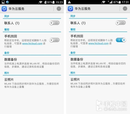 最后我们来说说目前Andriod手机中比较火热的机型华为荣耀3C,这款手机使用的是EmotionUI系统,同样为用户提供了手机召回的功能,首先我们要进入手机的“设置”菜单,之后找到“华为云服务”,这时我们要登陆自己的华为账号。