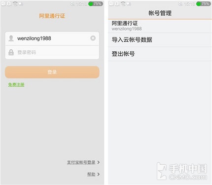 笔者首先要介绍的是阿里云OS系统的防盗,首先我们需要进入手机的“设置”菜单,然后找到“账号”进入之后要登陆账号才进行接下来的防盗操作,这里的账号我们可以注册也可以用淘宝账号登陆。