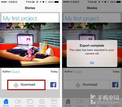 到这一步可还没有完成,接下来您需要回到首页,也就是Stories。视频下方有Download字样,点击之后你所拍摄的大片就保存在苹果自带相册中了。