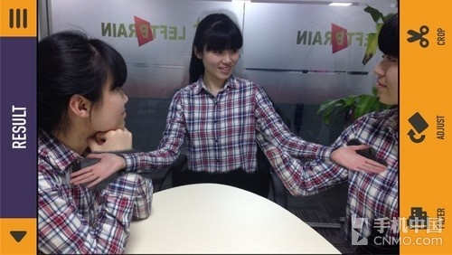 图片合成仅仅需要几秒钟的时间,接下来就是见证奇迹的时刻。是不是完美结合毫无PS痕迹呢?瞬间多了个一摸一样的自己恐怕连亲妈都要被吓到!画 面里同时出现好几个我,猜一猜到底哪个才是我的真身呢?而这些只是小编想出来的一小部分,更多的创意就需要您的想象才华了。拼合好的照片还可以使用滤镜进 行美化,或者裁切成您需要的大小。