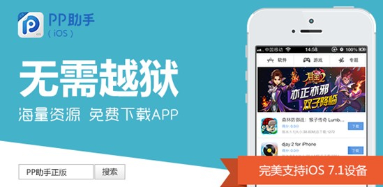 图1:PP助手正版支持iOS7.1不越狱下正版