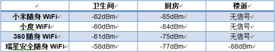 从测试结果来看,在卫生间时,瑞星安全随身WiFi的信号略强一些,其他三家几乎不分伯仲;厨房由于距离较远,四款随身WiFi的信号普遍开始减弱;而 楼道的情况令小编比较吃惊,小米随身WiFi、小度WiFi和360随身WiFi全军覆没,都没有信号,只有瑞星安全随身WiFi依然坚挺。