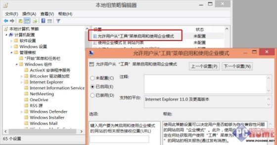 此次更新的Windows 8.1 Update除了优化鼠标操作外,还为经常需要访问旧版网页的用户提供了IE企业模式——即调用IE8内核来访问一些就网页,解决这些网页可能存在的兼容性问题。但是这个功能IE11默认并未开启,需要我们手动来开启它。