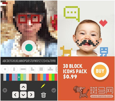 只有效果转换肯定是不够味的,在接下来中,可以在照片里添加像素方块,可以拼出文字,图案,字母等等(比较想吐槽的事,里面有一大堆需要解锁的方块图案,能看不能用实在是不开心。),在所有的都做好之后,就可以导出这张照片了。
