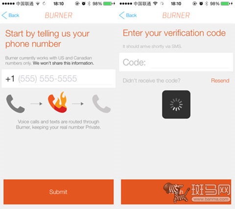 我们要使用的APP名叫《Burner》,用它就可以虚拟出电话号码。第一次使用需要输入自己的电话号码绑定服务,然后在输入验证短信就可以使用了。