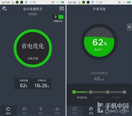 金山电池医生也是一款很强大的电池管理软件,不但能让用户对电源进行管理,还能对手机电池进行保养,它将手机充电分为三个阶段,不同的阶段采取不同的电压和电流,同时它还提供不同的省电模式,这让省电变得简单很多。