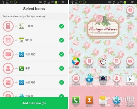 和更换图标的方法差不多,选择好主题后点击下方的“Use this Deco Pack”,应用会自动将图标与应用关联上,如果不满意还可以点击更换,最后选择一张喜欢的壁纸再点击确定,刚刚设置好的图标就全部显示在桌面上了。