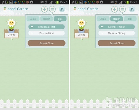 应用还有一些简单的小设置,比如联系人和通讯记录排序的方式,或者植物成长的周期,当您点击这一株植物的时候即可呼出电话,如果您呼出的次数越多,植物当然也就成长的越快。