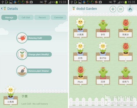 每部手机中都会安装通讯录,小编也为您推荐过各种风格的版本,而这款名为Dodol Garden(植物通讯录)的应用不但具有可爱的外形,还有很多有趣的功能,非常适合女孩子们使用。