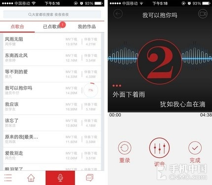 听别人唱歌是不是有点想一试身手了?“好唱”为用户提供了专业的调音功能,就算五音不全也能声震全场。点击屏幕最下方的麦克风图标即进入点歌 台,流行歌曲的伴奏都能在这里找到,并且支持下载即使离线也能唱个痛快。伴唱界面与KTV类似方便用户掌握节奏,伴奏中会有轻声原唱,想跑调都没那么容 易!