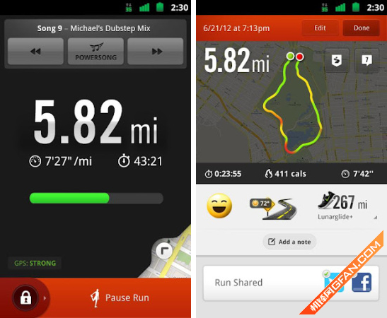 很多朋友上手后不知道如何应用,其实软件本身在静态环境下发挥不了任何作用,而是在运动过程中,软件能够依靠GPS定位、重力感应芯片和地图应 用,记录下使用者的速度、距离、路线并将它们在地图中显示出来,不仅如此,它还可以分析你的卡路里消耗等信息有助于你对运动效果做出评估。