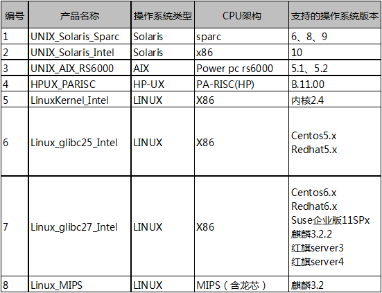 表:瑞星杀毒软件For Linux支持操作系统列表